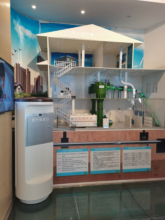 張秀標(biāo)總經(jīng)理一行參觀了天津中新生態(tài)城的垃圾氣力輸送系統(tǒng)。垃圾氣力輸送系統(tǒng)是一個(gè)高效的、現(xiàn)代化的和清潔的固廢收運(yùn)系統(tǒng)。該系統(tǒng)以空氣為動(dòng)力,經(jīng)地下管網(wǎng)輸送,將固體廢棄物從修建物輸送到基地搜集站。氣力輸送系統(tǒng)垃圾完全密閉搜集與輸送,小區(qū)內(nèi)可取消手推車、垃圾桶、廢物箱房等傳統(tǒng)的搜集東西與設(shè)備,可有效保持清潔的寓居環(huán)境。