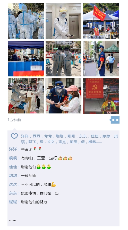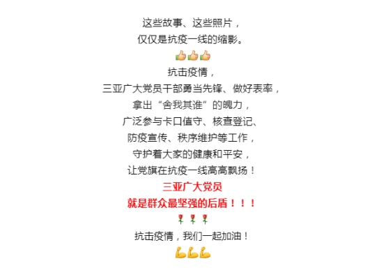 連日來,三亞多位黨員干部投身抗疫一線,不怕苦不怕累,守護(hù)著三亞這座城,守護(hù)著我們!辛苦了,謝謝你們!