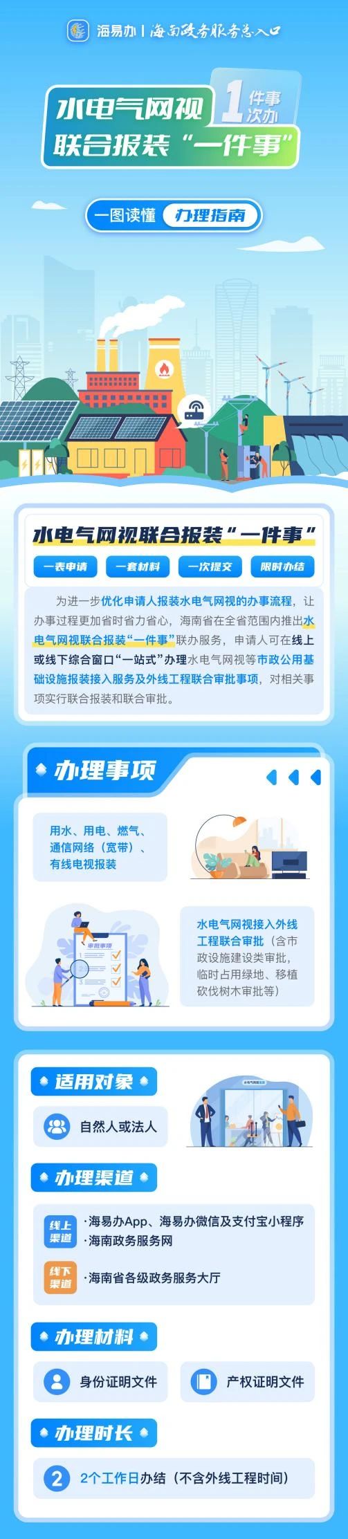 一圖讀懂海南水電氣網(wǎng)視聯(lián)合報裝“一件事”辦理指南
