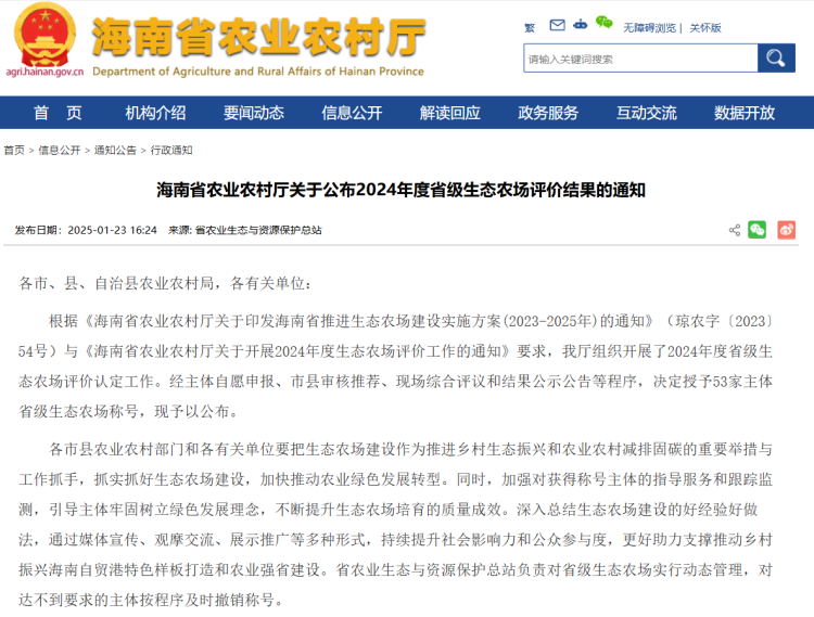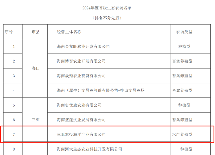 近日,海南省農(nóng)業(yè)農(nóng)村廳組織開(kāi)展省級(jí)生態(tài)農(nóng)場(chǎng)評(píng)價(jià)認(rèn)定工作,三亞環(huán)農(nóng)集團(tuán)旗下三亞農(nóng)投海洋產(chǎn)業(yè)有限公司榮獲“2024年度海南省省級(jí)生態(tài)農(nóng)場(chǎng)”稱號(hào),是全省首批獲評(píng)的海上生態(tài)農(nóng)場(chǎng)。